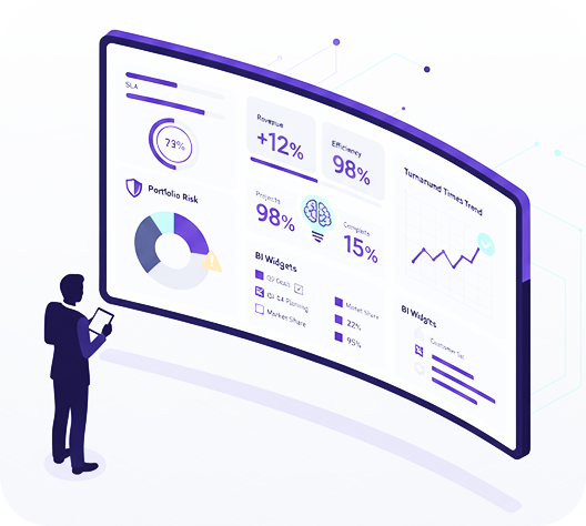 Gain visibility into SLAs, TATs, portfolio risks, and operational efficiency with advanced dashboards.